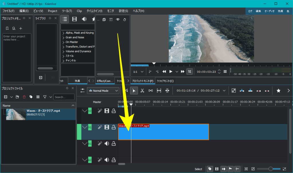 動画はV1にドラッグ&ドロップでOK