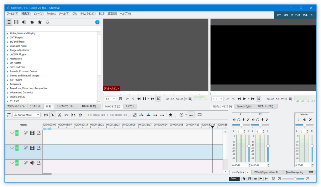 オープンソースの動画編集ソフトで、日本語表示にもなります。ヘルプは英語しかないようです。