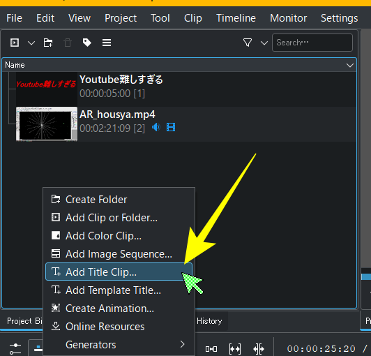 (1)「Add Title Clip」で挿入する